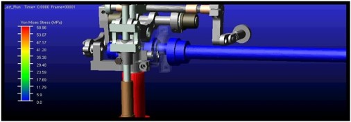 Analisi FEM non lineari implicite, con modellazione di tutte le non linearità: materiale (snervamento, iperelasticità), geometrica (grandi spostamenti) e di contatto/stato. Analisi cinetodinamiche per la verifica del funzionamento in virtuale del sistema meccanico che si sta progettando. Modellazione di contatti, attriti, forzanti dinamiche di diversa natura. Monitoraggio di tutti i carichi dei vincoli del modello cinetodinamico. Possibilità di implementare il modello di corpo flessibile, sui componenti ritenuti più critici, al fine di determinarne lo stato tensionale e/o gli spostamenti, con una precisione comparabile a quella del modello FEM. Calcoli CFD al fine di determinare il campo termo fluidodinamico di un dominio fluido, al fine di determinare: le perdite di carico, la distribuzione di temperatura, le vorticosità ecc. ecc.